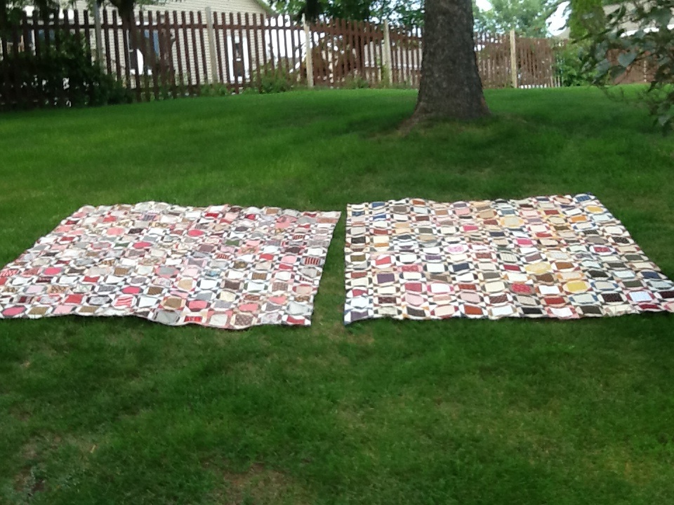 I set my quilt 12 blocks wide, in 14 rows, alternating light and dark blocks (see the centers)…I am not going to put a border on it as I don’t think it needs one. My quilt finishes 72″x 84″…now the real questions….Should I have the antique quilted…It is only a top? What do think?…I would love to know your opinions…