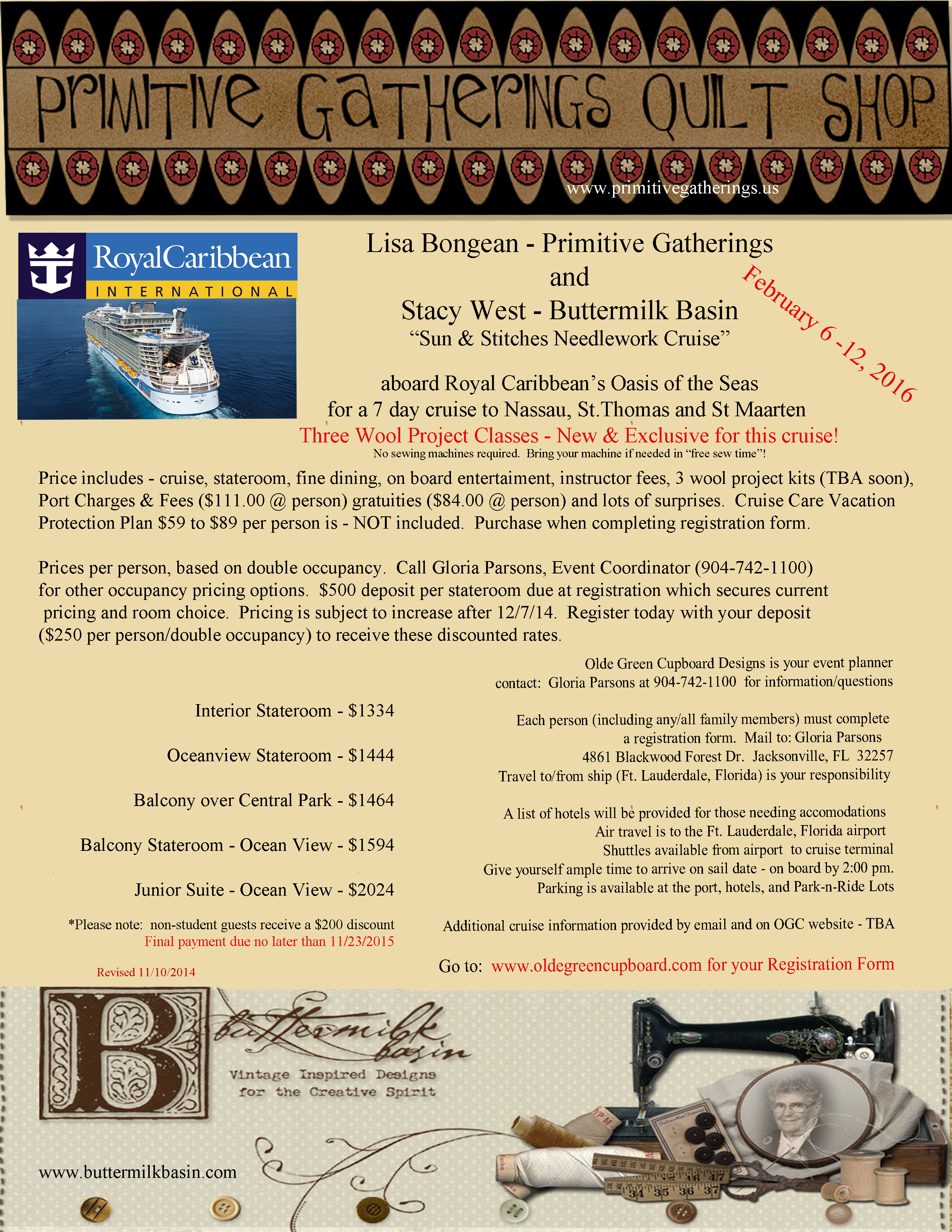 Then finally…Our Cruise is filling fast…We have over 100 people going already including non stitchers…we have space for less than 20 quilters left! We can only sew about 100. This is super exciting…So if you are on the fence I’d hurry up and decide before we are full!!! You don’t want us to have all this fun without you! This is an updated flyer…Fort Lauderdale airport is cheaper than flying to where ever we had you coming in before! Prices include your lodging, kits for classes and lots of special surprises!