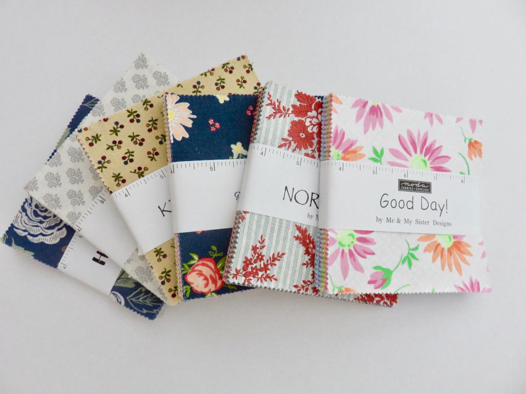 We each sent 1 charm pack and 1.5 yards of our coordinating fabrics to our assigned designer.